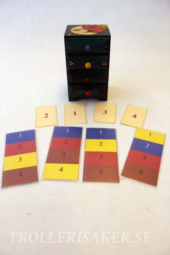 Lådorna har olika färger och barnen väljer en siffra mellan ett och fyra.