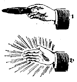 Konstnären tar upp en cigarr ur ett etui, hållande cigarren med tummen och pekfingret överräcker han den till någon av åskådarna, så snart denna ämnar taga cigarren, försvinner cfen blixtsnabbt och osynligt.