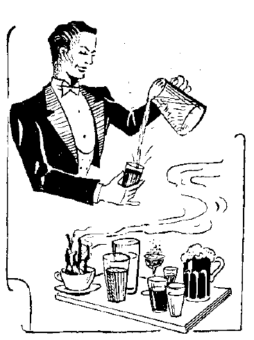 Som exempel,serveras ur samma glasbringare, hallonlemonad, citronil, öl olika slag av safter , kaffe, mjölk,rödvin, cognac,wisky,pilsner,olika sorters likör,eldsvatten.