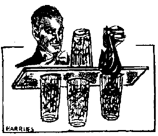 Plattan med de avigvända glasen vändes så att glasen syns hänga liksom magnitiserade på plattans undersida, det fjärde glaset placeras avigvänt på plattans översida.