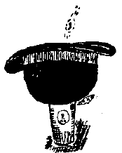 Konstnären kastar ett lånat mynt, rätt igenom en hatt, ned i ett glas.