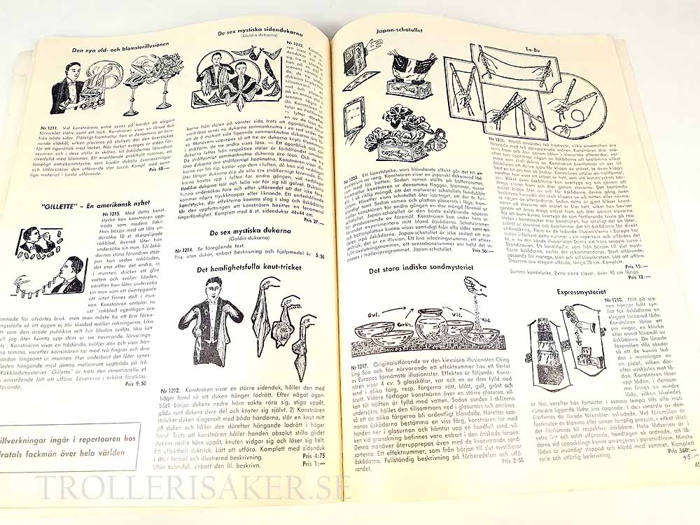 A4 format och på 77 sidor hittar du alla klassiska trick som salufördes under 1900-talet av denna firma.
