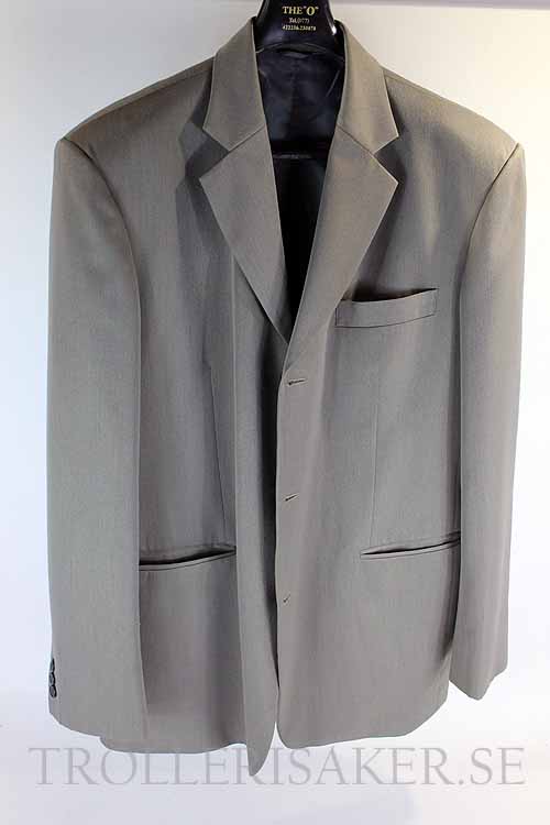 En sandgrå kostym (kavaj och byxa) i storlek 52 med inbyggd hemlighet.
