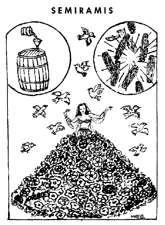 Tunnan är försvunnen i dess ställe finns på scenen, en prunkande och färgrik blomrabattt ca 130 cm hög och en diameter av ca 3 meter, från blomgruppens centrum flyger tiotalet duvor, samtidigt stiger en dam fram ur gruppen.