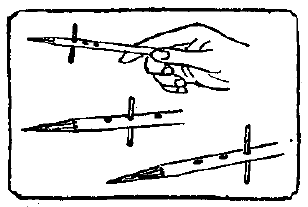 På konstnärens kommando hoppar stickan från första till andra och därefter till tredje hålet.